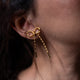 Let our Dangling Luna Earrings, adorned with cascading pearls, sprinkle a touch of celestial elegance to your ensemble. Dress not just to impress but to outshine the stars themselves.
